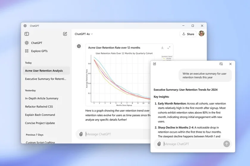 Sin embargo, esta versión para Windows tiene la desventaja de no incluir funciones como el uso de comandos de voz para la interacción, algo que sí está disponible en la versión para MacOS. OpenAI ha señalado su intención de brindar «la experiencia completa» a todos los usuarios para finales de este año, lo que sugiere futuras mejoras y la eventual inclusión de las funcionalidades faltantes.